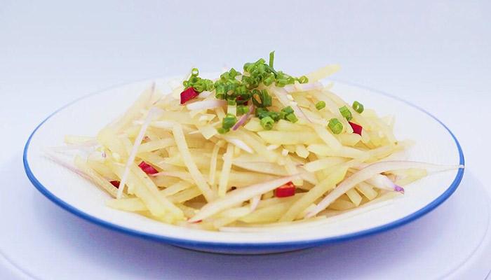土豆去皮,切成细丝。